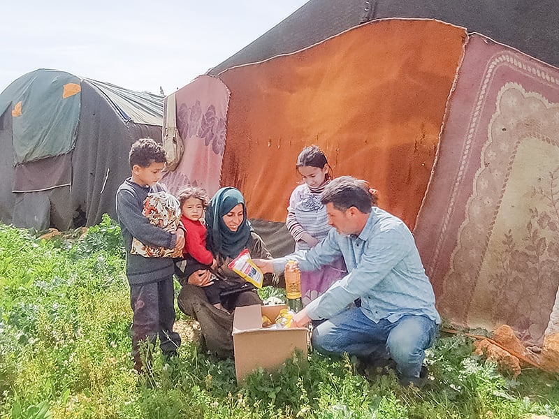 CAM contacts in Syria reach out to displaced families across the country. Every month they give Ridwan and his family a food parcel with powdered milk, canned vegetables, and other items. One contact says it fills his heart with joy to see the children happy and cheerful when they receive food.